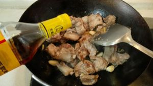 翻炒几下后加入适量的料酒和酱油煎翻炒;