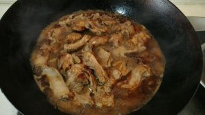 第三步:把以上的調味料放在鍋裡,煮開,把肉放進去煮,直到把水份差不多煮完,剩點汁就可起鍋。