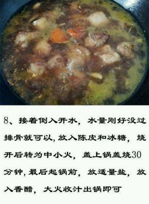 放入开水后加入排骨,开水莫过排骨,我没有放很多调料,只放了盐味精和醋,醋多放一点,大火转小火煮。