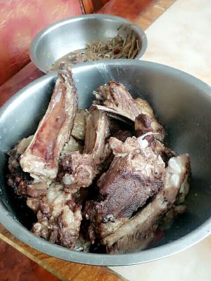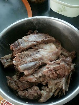 顿大约四十分钟左右,把排骨捞出来,再盛出一碗汤备用。