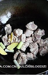倒入一点料酒,放葱姜,加适量老抽上色,翻炒均匀后,倒入适量开水
