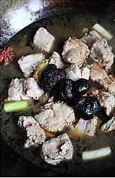 加水接接近淹没排骨,加少量醋,加八角,盖锅盖大火烧开转小火慢炖约30分钟至筷子能戳入排骨