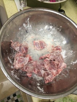 排骨洗净,今天不知为什么,没有排骨就买了连骨腿肉。