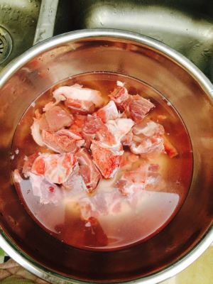 选择块比较小的排骨,清理干净后,用清水浸泡15分钟