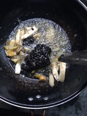 把泡椒,泡姜,豆鼓,酸菜,白糖,【喜欢吃辣的可倒入2勺郫县豆瓣】倒入油锅里翻炒,出香味即可。