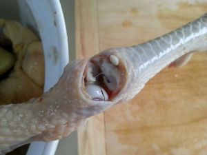 鸡仔抠去体腔内部淤血跟多余的油脂