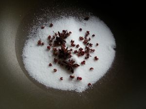粗盐里加入花椒和大料炒至盐微微发黄即可盛出晾凉备用。我用的海盐,颗粒比日常炒菜的盐要粗一些,如果没有海盐用日常炒菜的盐也可以,不过海盐的口感会更好些。