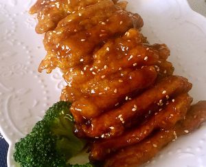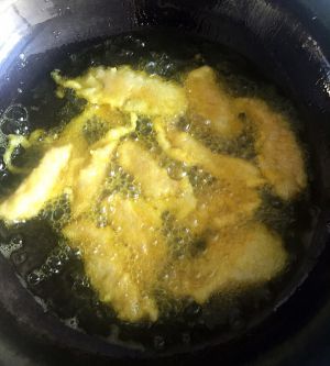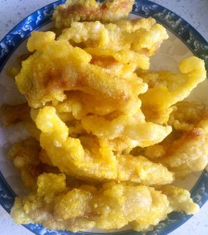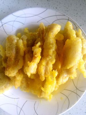 鸡胸肉切成条,放盐料酒淀粉腌制十分钟,放入鸡蛋面粉。
