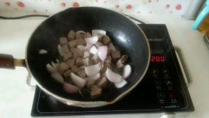 热锅下油,翻炒牛肉块和洋葱!