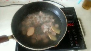 加入没过肉的水,大火炖5分钟后加入1调料勺盐。