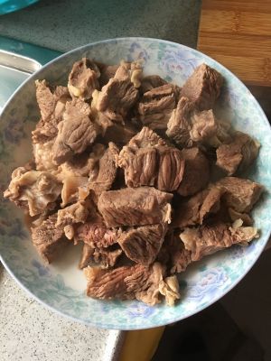 牛肉拿冷水煮,去沫,将肉捞出备用。
