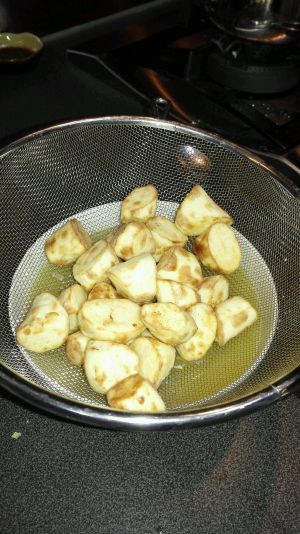 锅烧热放入油,炸至金黄色,注意油温,控油捞出
