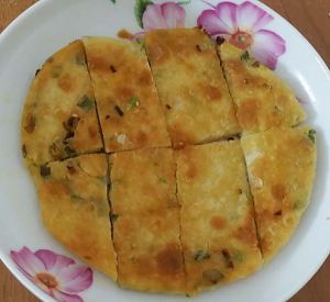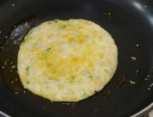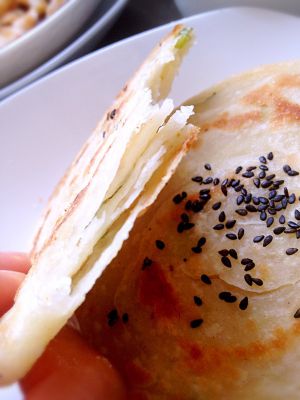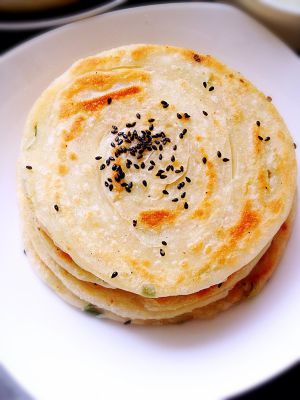 锅里放入少量油,放入饼,小火煎,半分钟后翻面,来回几次,等饼煎到八成熟的时候轻轻摔几下,摔出层次来,两面金黄,熟了之后就可以出锅了