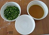 醒面团的这段时间正好可以准备葱油料。准备三颗小葱,洗净切碎放在碗里备用。另外准备食用油,盐,十三香。