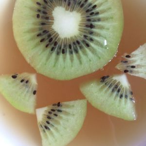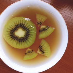 我在冷藏的同时熬了一锅冰糖雪梨,加入了白凉粉煮开,加了点奇异果,冷却以后一起放入冰箱冷藏。