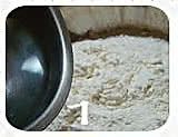 将80℃左右的热水倒入面粉中,用筷子搅拌成雪花状。