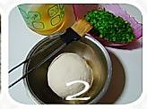 待成型后快速搅拌,再加入葱花一同以慢速拌匀