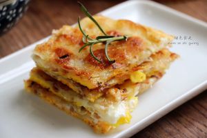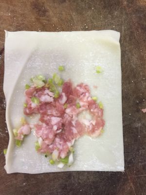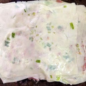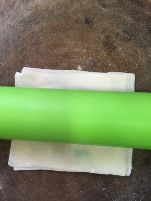 以此类推重叠着做上4张,若您想再放一两张也没关系。然后用擀面杖。