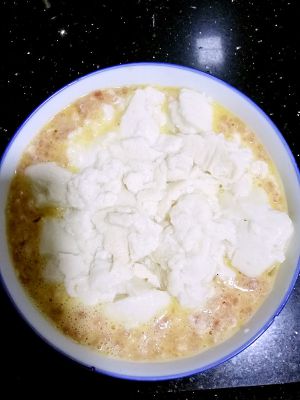 把上面的料拌均后加入豆腐,记得这里要搅拌的均匀些。 锅里起水,水开后放进去蒸10分钟就好。