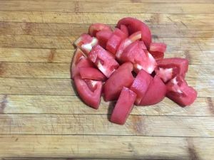 起锅放油,油热加蒜爆香,放番茄丁,炒成糊状