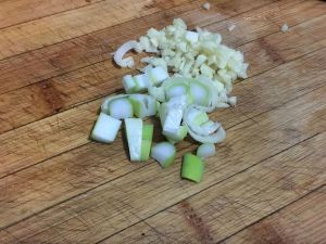 处理好的材料(洋葱、西红柿切丁、肉末、葱段)