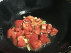 倒入切好的番茄,炒至番茄塌蔫出汁