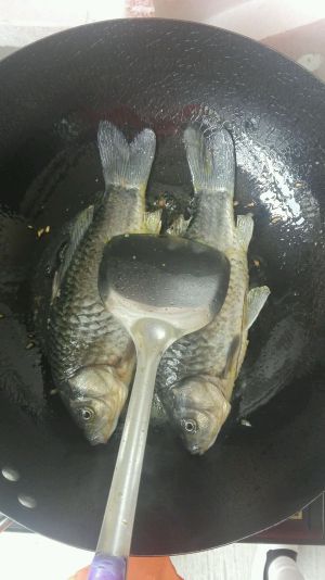 鲫鱼下锅煸一下,去腥,时间不宜长