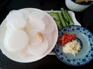 准备好食材如图示,萝卜不在其中的,煮汤用的