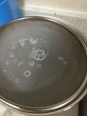 鲜奶蒸过10min后取出静置,等待奶皮结成(如果觉得太慢可以取一只大碗盛凉水隔碗冷却);