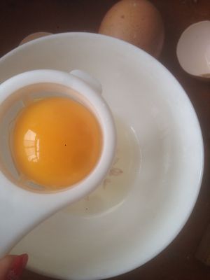 鸡蛋打入蛋黄分离器中,取蛋白,蛋白中加入白糖或蜂蜜(有炼奶也可以),一起搅拌均匀,卖力的搅吧,不能有半点马虎哦!