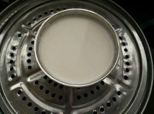 然后把牛奶放锅里隔水蒸十到十五分钟,最好是碗上包一层保鲜膜