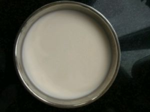牛奶倒完,奶皮就沉在碗底,千万不要把奶皮弄破