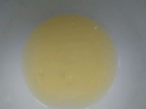 晾凉牛奶,放入牛奶,汤和蛋清搅拌在一起