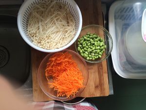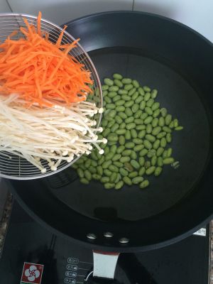 准备胡萝卜,金针菇,青豆。