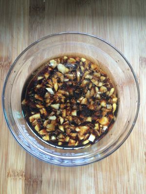 调汁:蒜末,生抽,陈醋,白糖,香油,喜欢辣的可以加一些辣椒油。