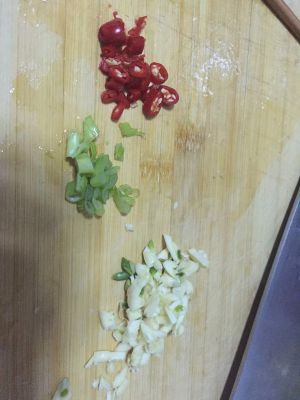 葱,蒜,小米椒切好备用