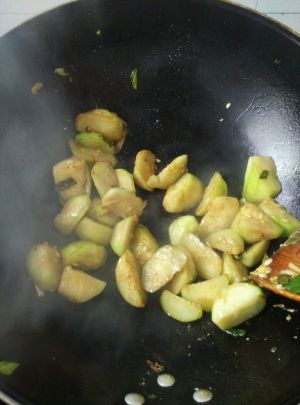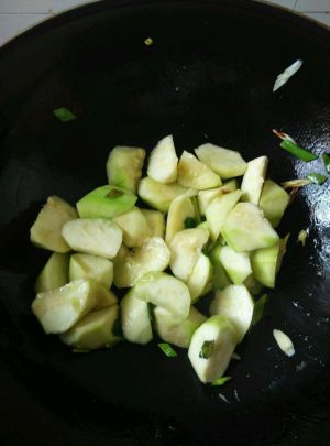 加入丝瓜片翻炒几下,然后放入清水,约2小勺。