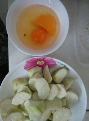 丝瓜去皮切滚刀块,鸡蛋打入碗中。