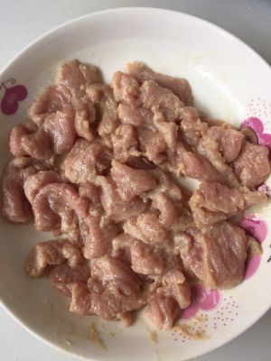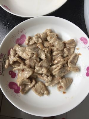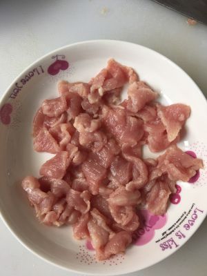 里脊肉切丝,加入料酒、盐、酱油、淀粉拌匀待用;