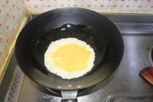 把打散的鸡蛋在热油锅里炒熟,盛出;