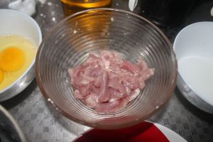1、里脊肉切片加入蛋清,淀粉,料酒,生抽抓匀静置;