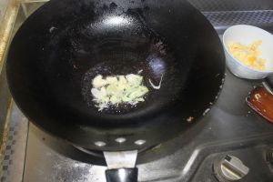 锅中再加一点儿油,油热后放入葱蒜爆出香味。