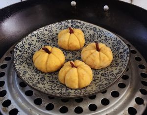 刚才煮南瓜的水不用倒,放上蒸格,大火蒸15分钟就可以了