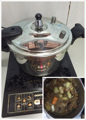 待加盖闷至开后倒入高压锅,上气后15分钟关火
