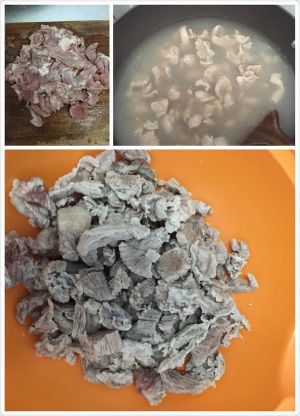准备牛杂肉,洗净,锅烧开水焯一下,去除血末,然后捞出备用