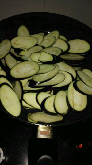 将茄子炒软,称出放在土豆片上面