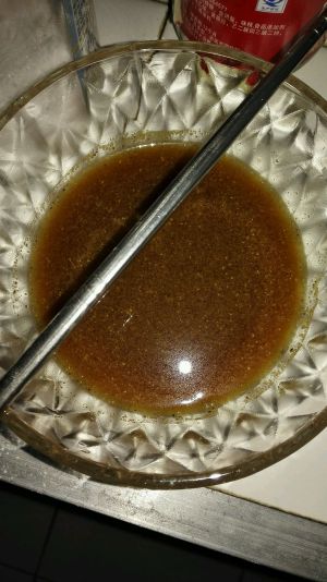 2兑汁,加入葱姜蒜末,一勺料酒,三分之一勺白糖,少许盐,酱油,鸡精,半勺淀粉,四勺水,香油搅拌均匀。