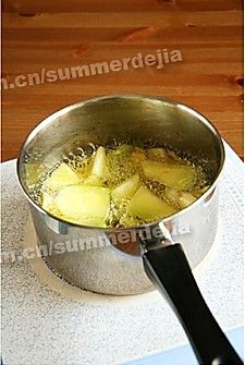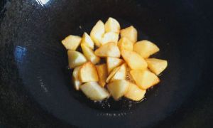 锅内倒入油 待油热后放入土豆煎炸至金黄捞出