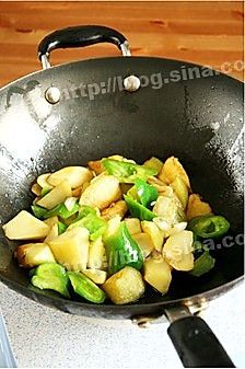 土豆和茄子切滚刀块 青辣椒切小片 茄子可以撒点淀粉减少吸油