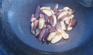 再倒入适量油 将茄子炸至微黄 出油即可捞出